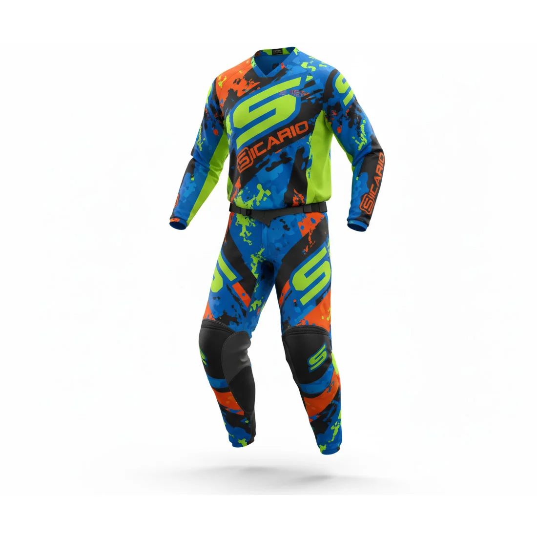 Iconic Urban Camo Style & Unlimited Personalization: Make a bold, modern statement with the SMX-3411’s unique Urban Camo design, available in sleek Black & White, powerful Blue, and electrifying Fluo Green. The sharp graphics and distinctive Sicario branding are applied using high-definition sublimation, guaranteeing vibrant, fade-resistant colors that will endure season after season. Go beyond the standard and truly define your identity on the track by utilizing our customization options: add your personal brand logos, team emblems, and custom rider numbers, creating a truly unique and powerful racing kit that reflects your winning spirit and distinctive style!